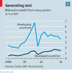 Az Economist indexét készítők úgy találták, hogy a csókos kapitalizmus mértéke csökkent az elmúlt hét évben a világban. Persze, mint minden társadalmi jelenséget ábrázolni kívánó mutató, ez sem megbízható, teljes körű mérőszám. Az ország milliárdosainak vagyonát vizsgálja a világ GDP-jéhez viszonyítva öt fejlett, a tíz legnagyobb fejlődő, valamint még nyolc olyan országban, ahol a csókosok komoly problémát jelentenek. Az adatokat részben a Forbes magazinból szedték, részben pedig olyan gazdasági ágak cégeitől, amelyek a járadékvadászat különösen jó terepei. Ezek